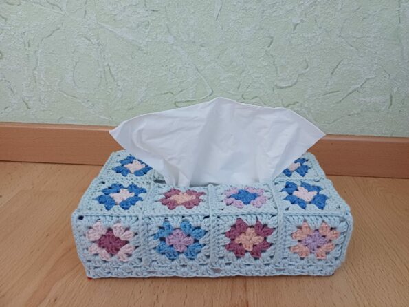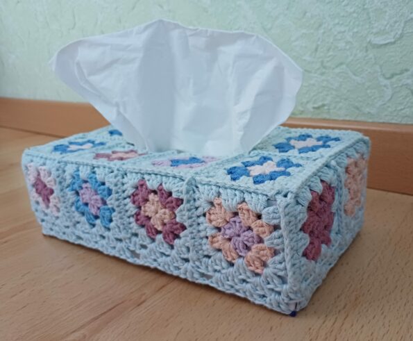 Une housse au crochet en granny squares pour vos boîtes à mouchoirs !